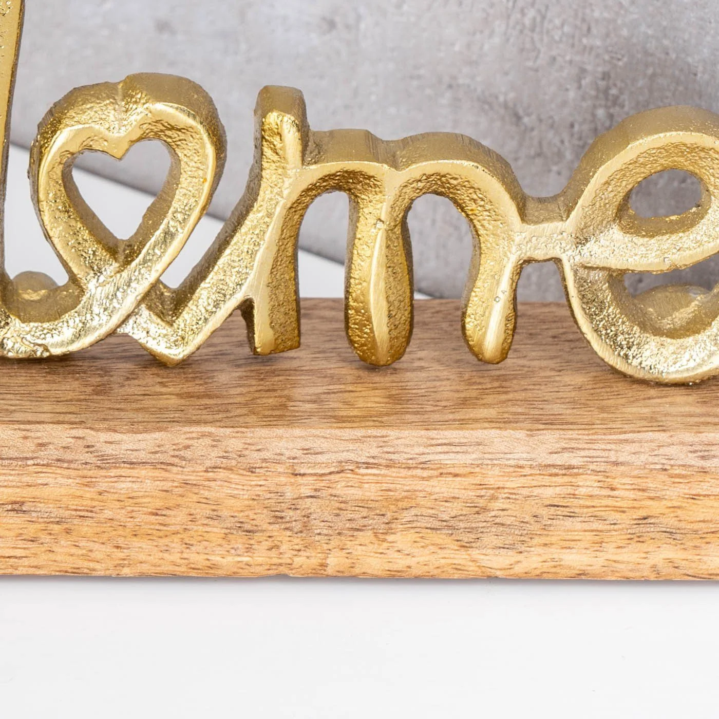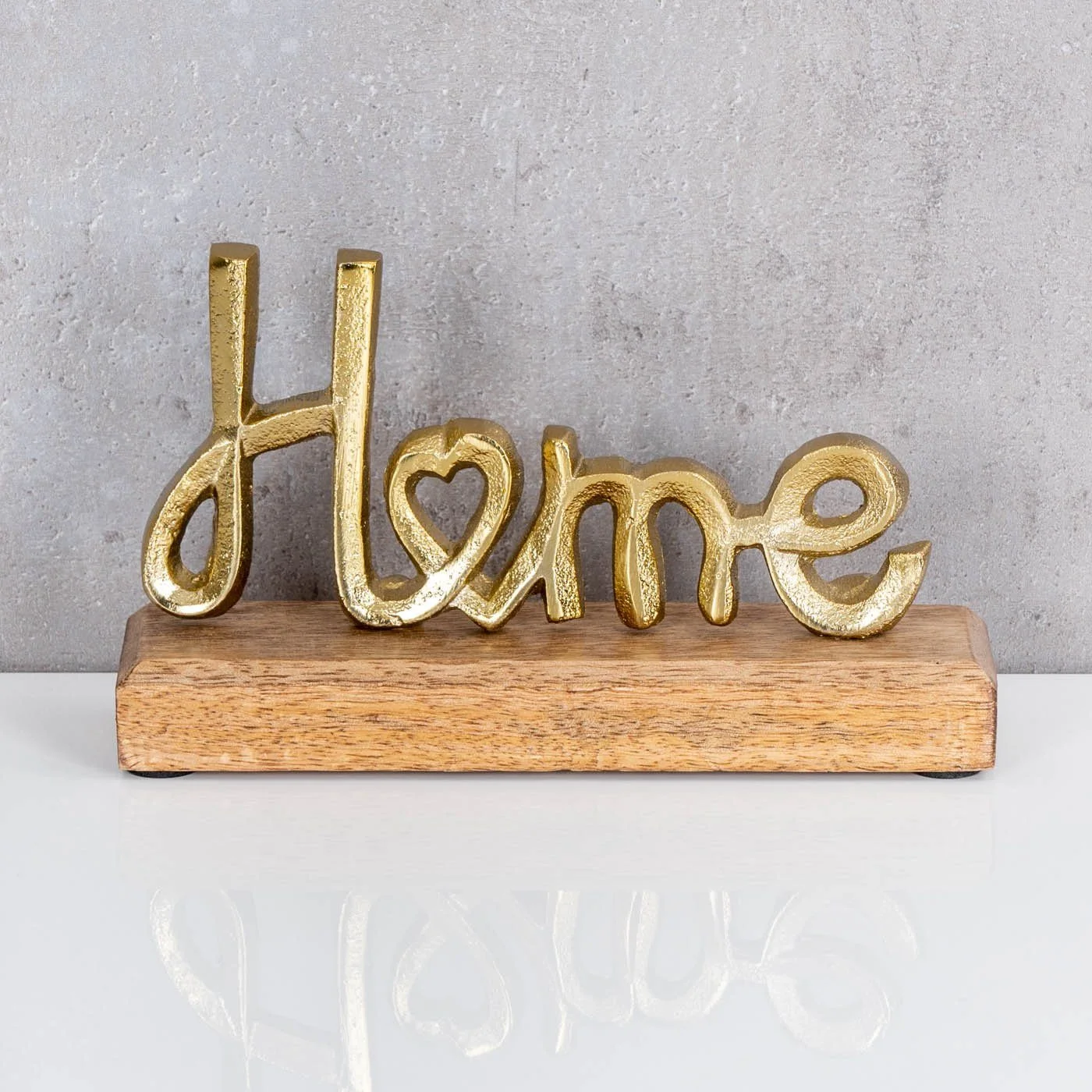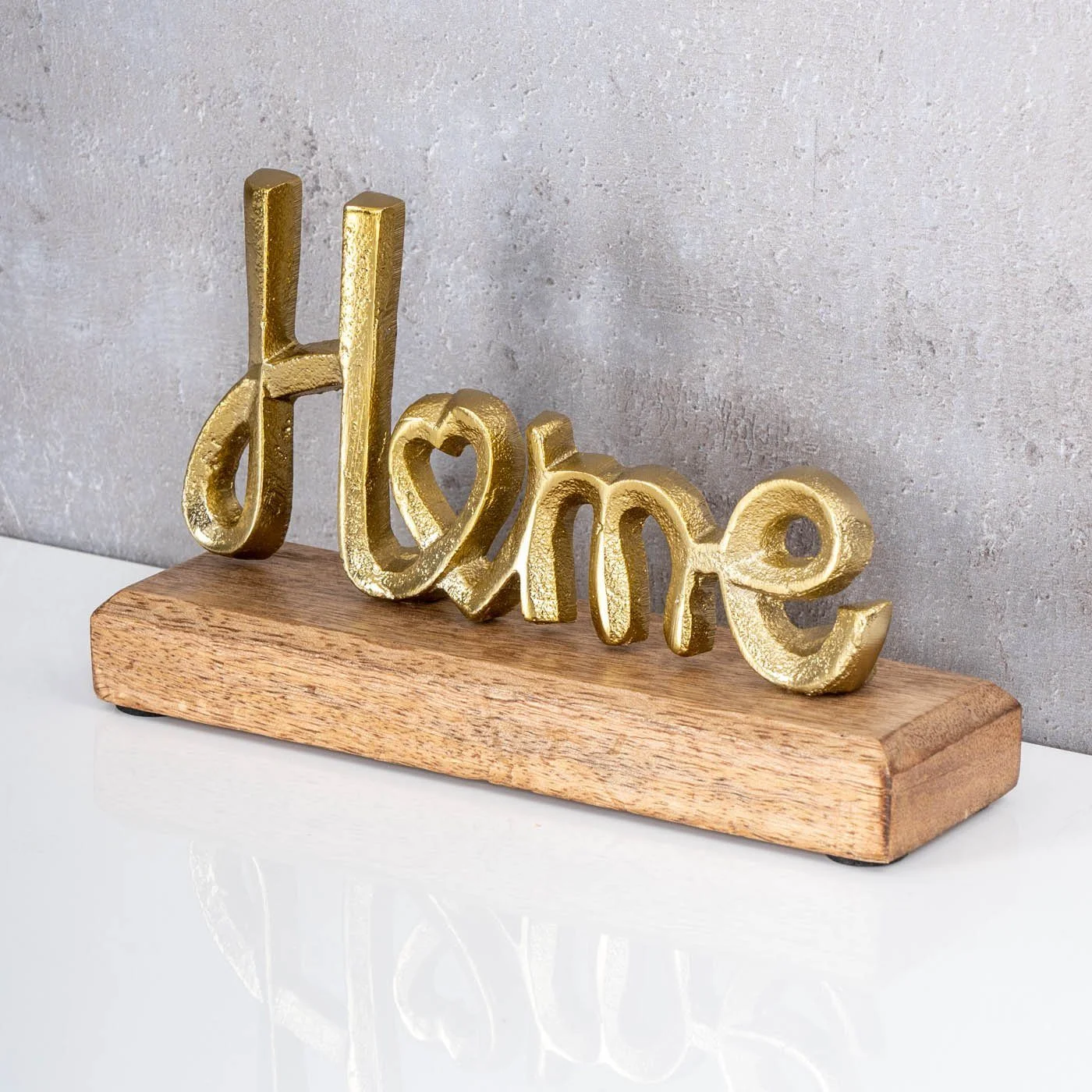Deko-Schriftzug „Home“ – Metall & Mangoholz, Gold/Natur
