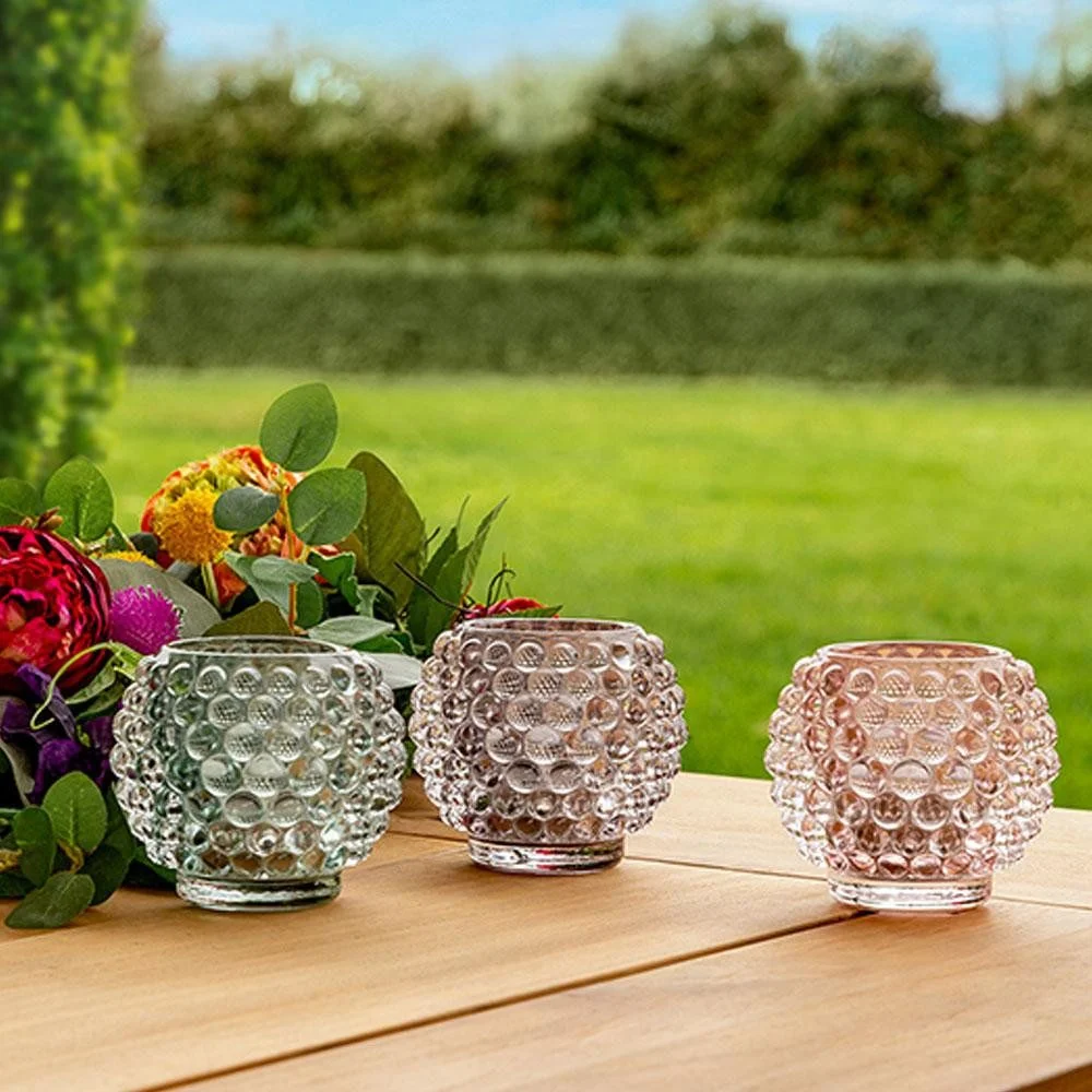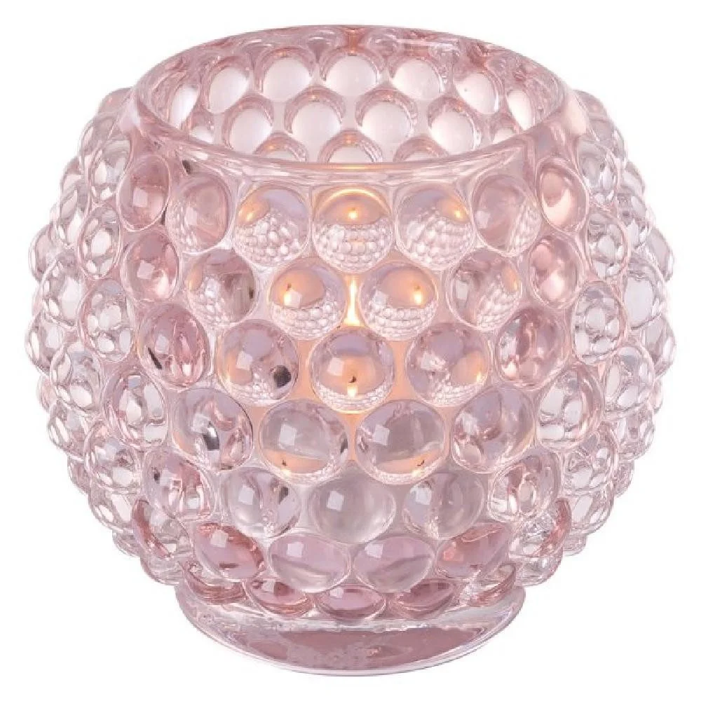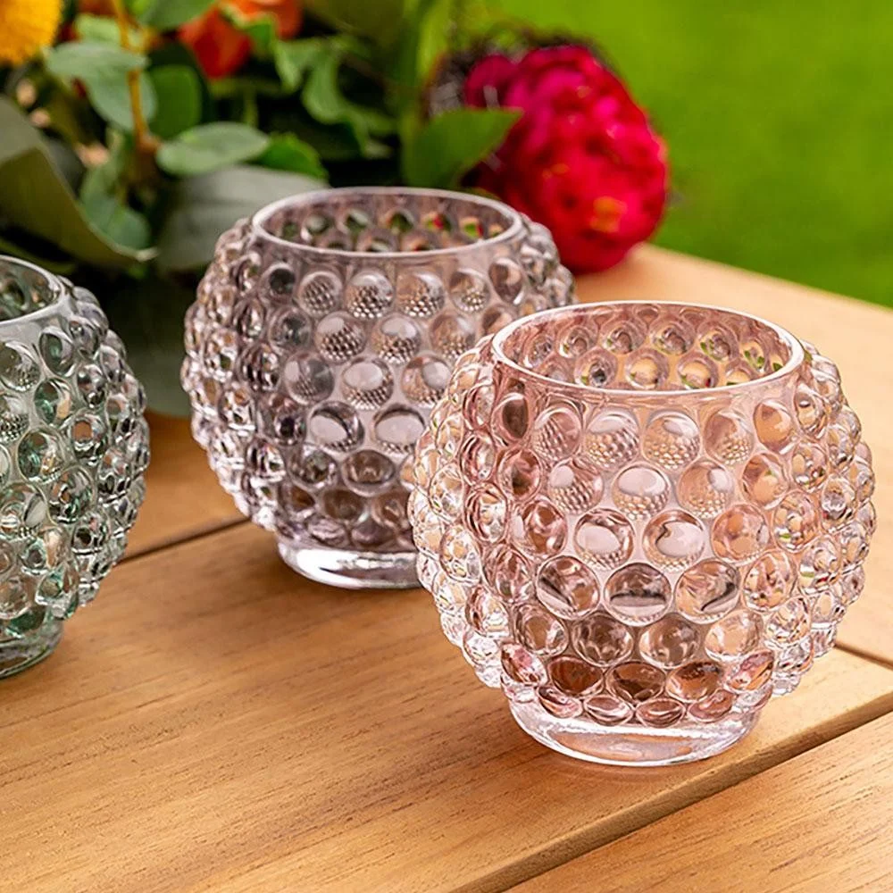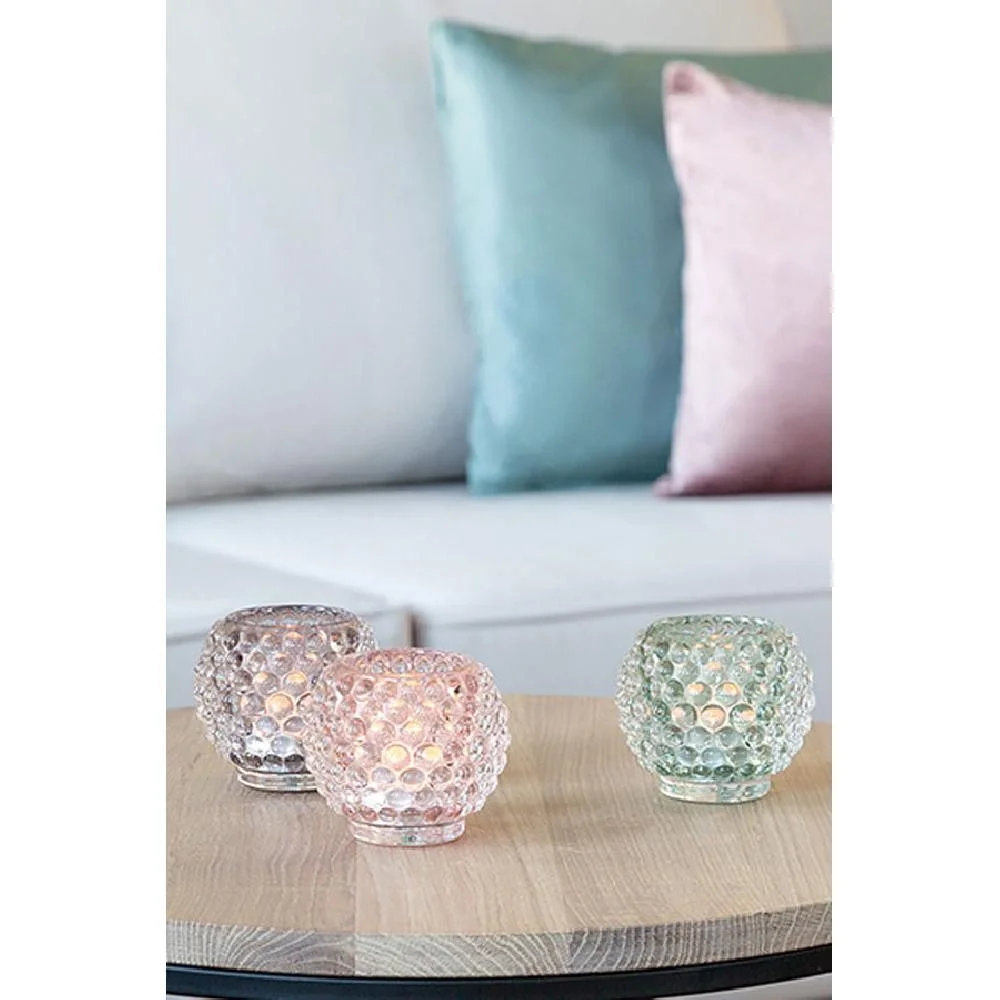 Kerzenhalter Teelichthalter Dots Glas – Rosa, 9×8 cm