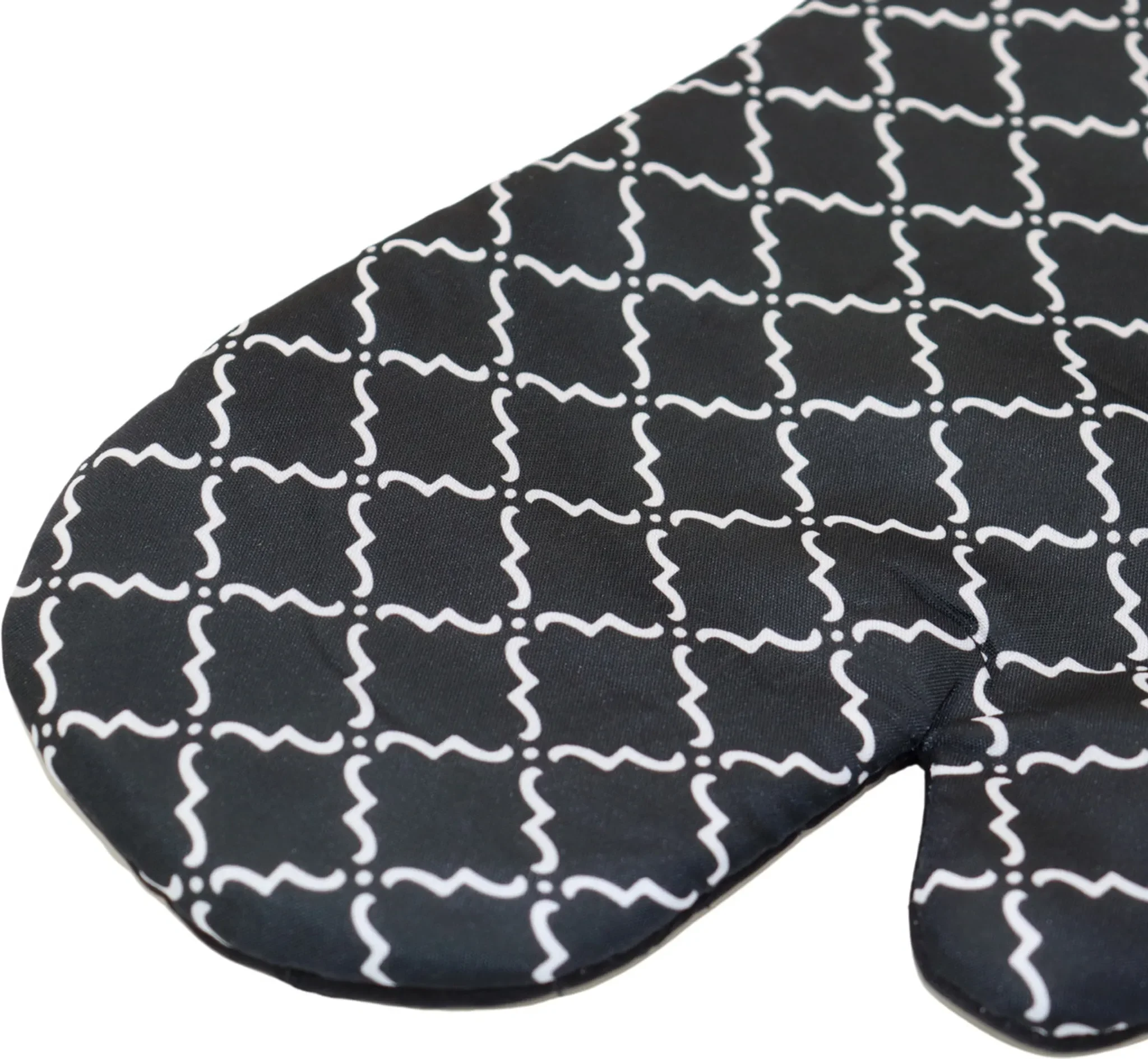 Dank der eingenähten Magnete lassen sich die Handschuhe bequem zusammenhalten und griffbereit an metallischen Oberflächen wie dem Kühlschrank befestigen. Praktische Aufhängeschlaufen und ein dekorativer Druck machen sie zugleich funktional und stilvoll.