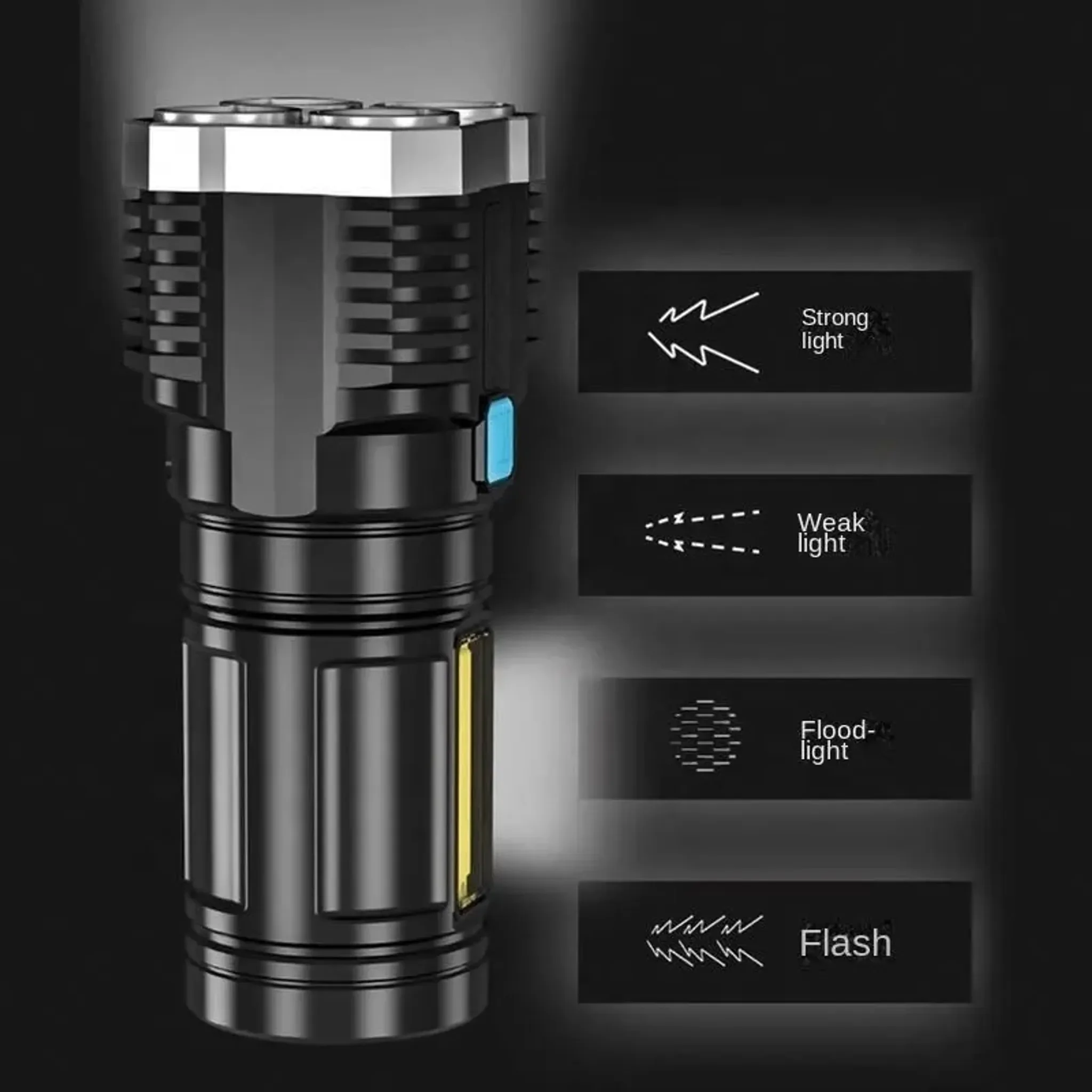 Die Maxi-LED-Taschenlampe eignet sich ideal für den Alltag, Camping, Stromausfälle, Abendspaziergänge oder Notfälle. Dank des USB-Ladeanschlusses ist das Aufladen einfach und praktisch.