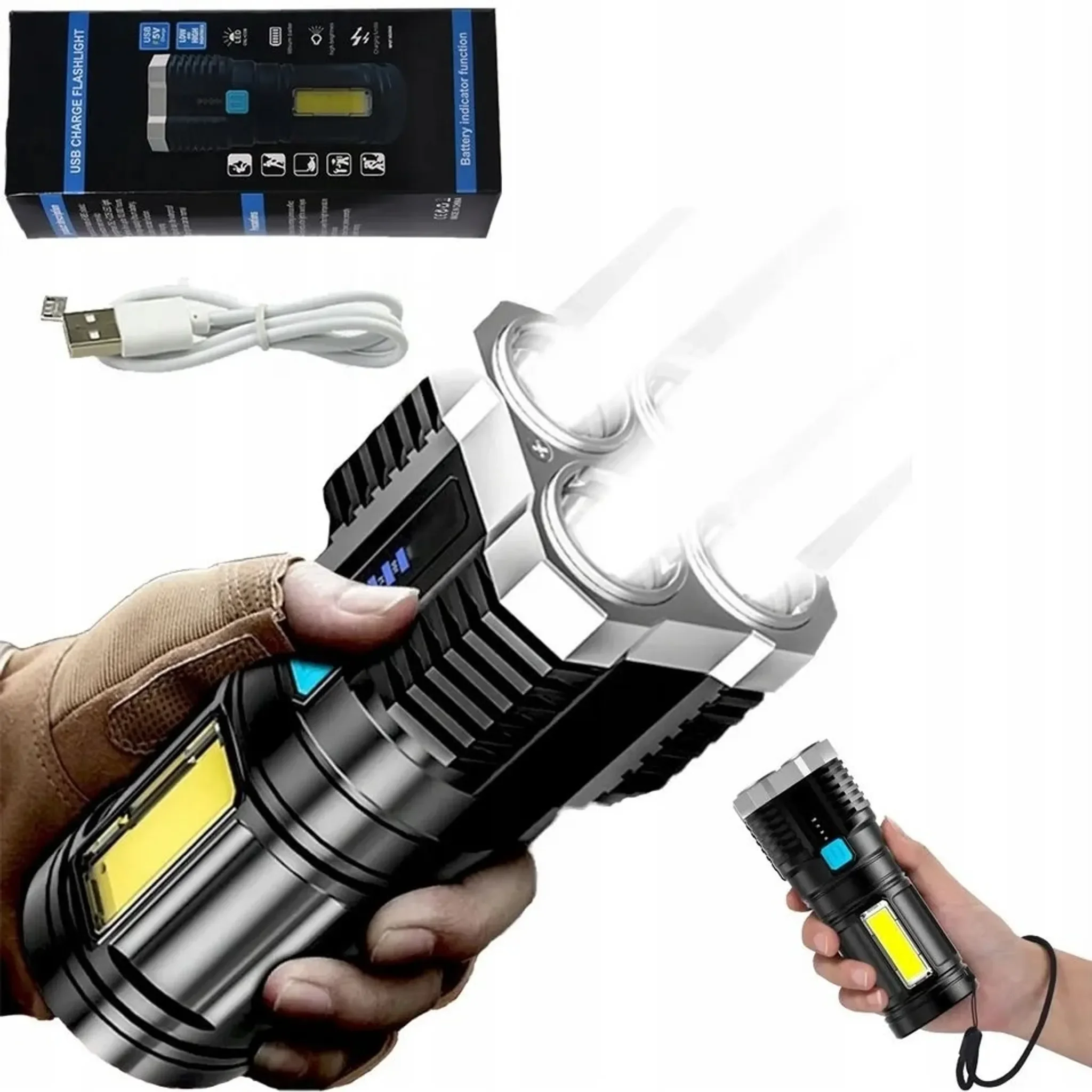 | Im Paket | 1 × Maxi-LED-Taschenlampe, 1 × USB-Kabel |