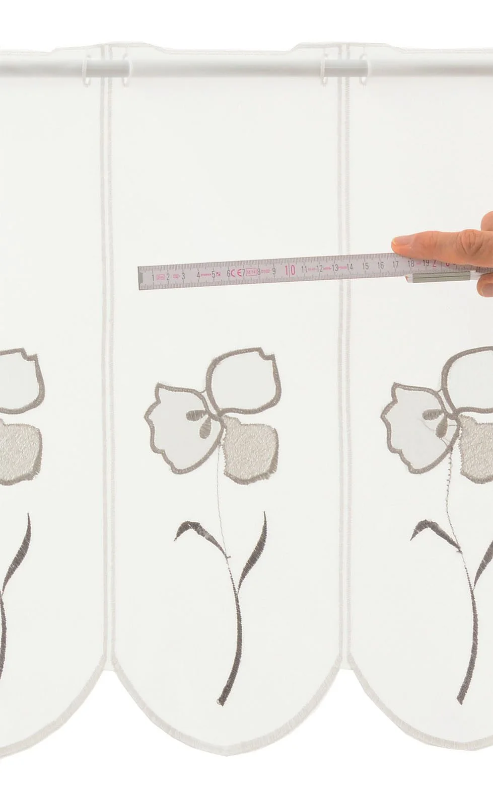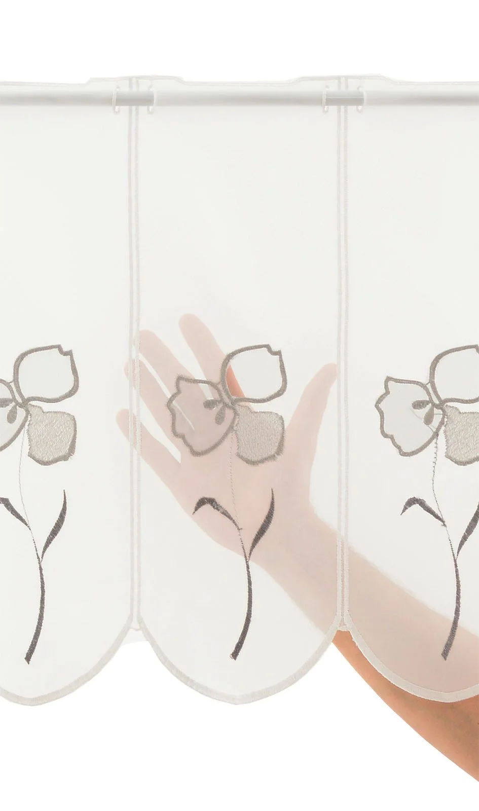 Produktinformationen "Scheibengardine mit Blütenmotiv – Wunschbreite, 45 cm Höhe"