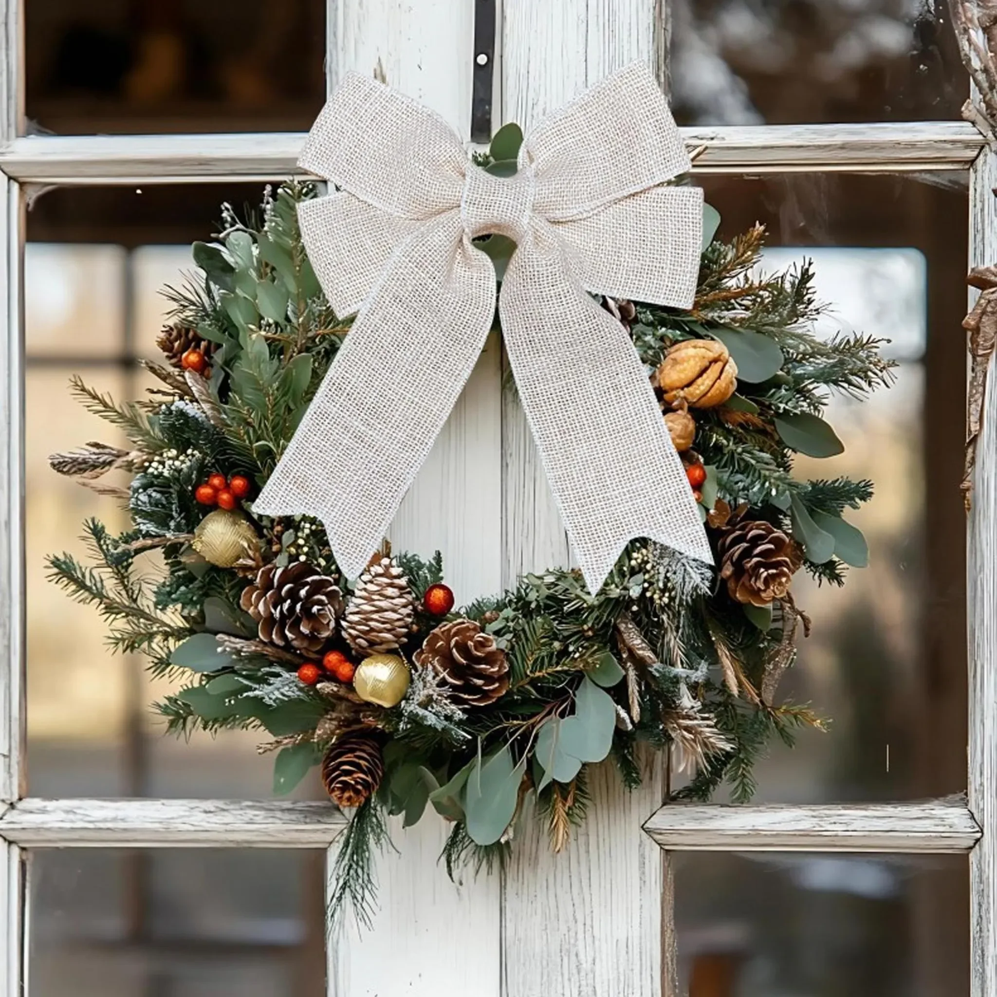 Diese rustikale Schleife aus Sackleinen verleiht Ihrer Weihnachts- und Festdekoration einen eleganten, warmen Akzent. Ideal für Kränze, Baumspitzen, Partys oder als dekoratives Highlight für Zuhause und Büro.