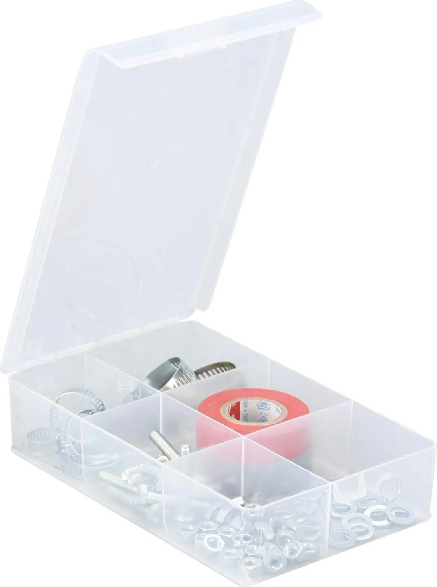 Highlights: Transparenter Deckel für schnellen Überblick, sichere Sortierung ohne Verrutschen, robuste Ausführung für Werkstatt und Hobby.
