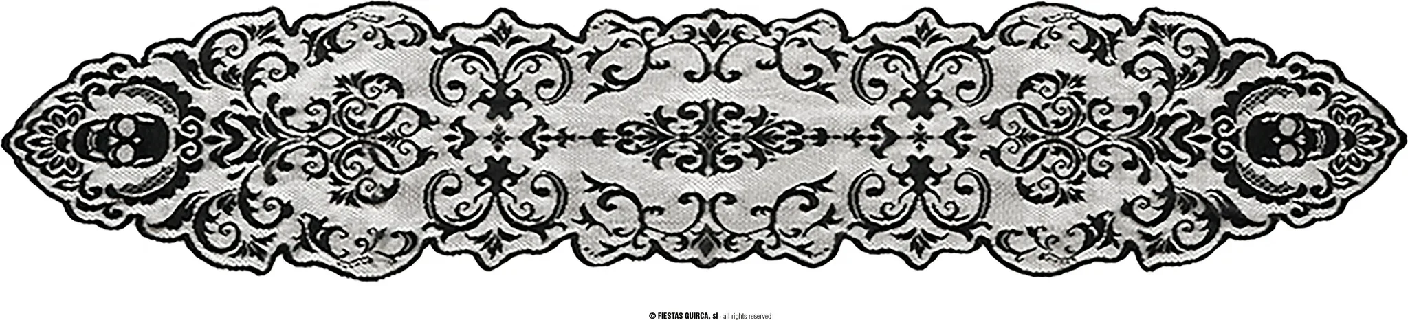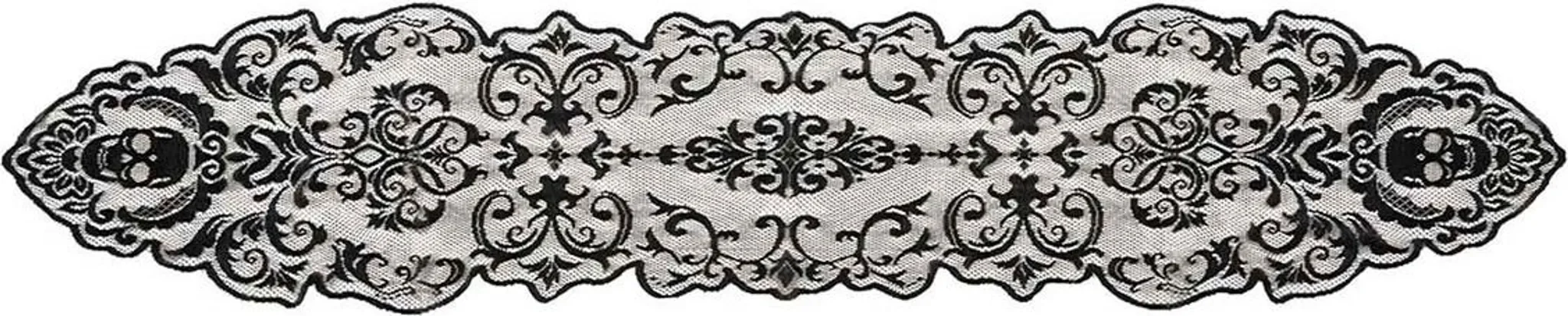Produktinformationen "Spitzenskelett Tischläufer 180×35 cm – schwarze Spitze mit Totenkopf-Motiven"